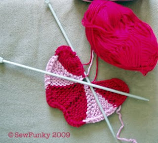 This cloth is made up of 9 wedges. Begin with wedge one, then knit wedge two, then wedge one twice, wedge two, wedge one twice, wedge two, ending by doing wedge one once more. On the last wedge, you can either cast off on Row 14 or using kitchener stitch knit the last row and the cast on row together, making sure you have the right sides together. Then sew up the circle in the middle, sew in the loose threads and you're done!