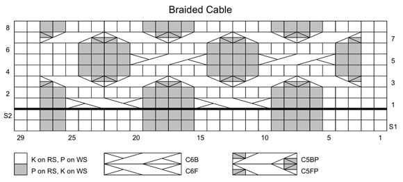 Work Set-up Rows 1-2 once, then repeat Rows 1-8 for Braided Cable.
