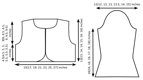 Chest: 30[34, 38, 42, 46, 50, 54] inches