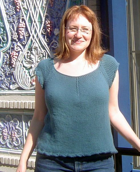 Fitting Note: To ensure a good fit, slip all sts to waste yarn and try on garment. If neckline is too wide, work one or more additional decrease rounds. Each decrease round will reduce neckline width by slightly more than 2.5 inches.
