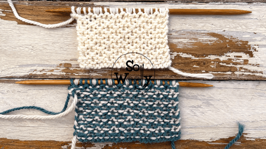 Row 4: With CA, K1, *wyif sl1kw, wyib K3*. Repeat from * to *, to last 2 st, ending with wyif sl1kw, wyib K1.