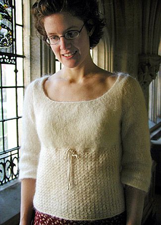 • Optional: small amount of coordinating or contrasting yarn for tie. [You can also use the Classic Mohair. I used Berroco Linet in "Creme Fraiche".]