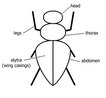 I've used scientific terms for a few of the different beetle parts, so here's a diagram showing which they are.