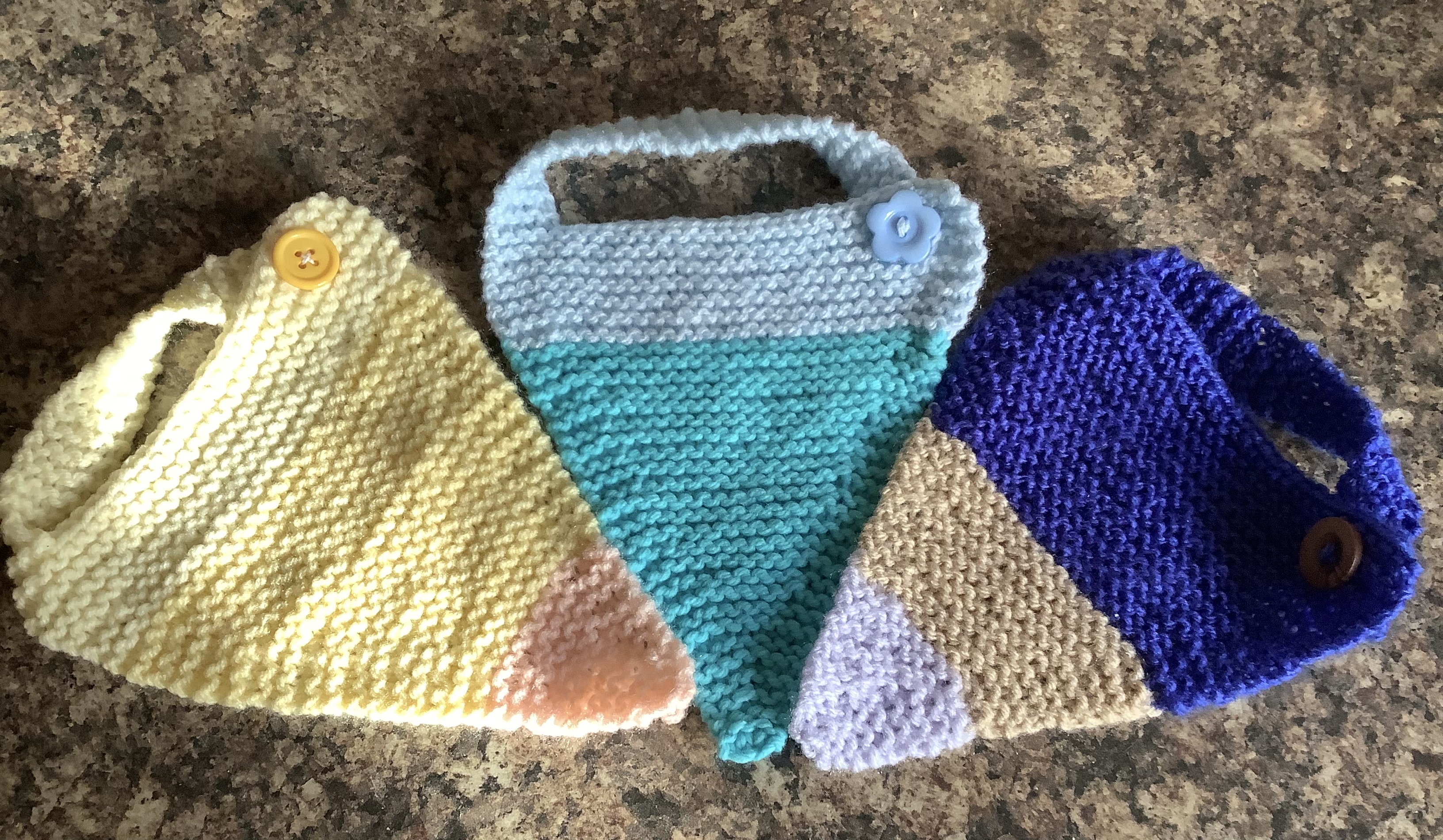 The Knitted Scrappy Bandana Style Bib is a charming and practical accessory for both infants and toddlers. With its unique bandana design, it adds a touch of style to any outfit while keeping your little one's clothes clean during feeding times or messy play. Handcrafted with love and care, these bibs are not only functional but also incredibly soft and gentle on delicate skin.