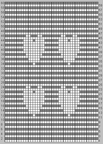 Row 48) k9, p2, k3, p2, k8, p2, k3, p2, k9