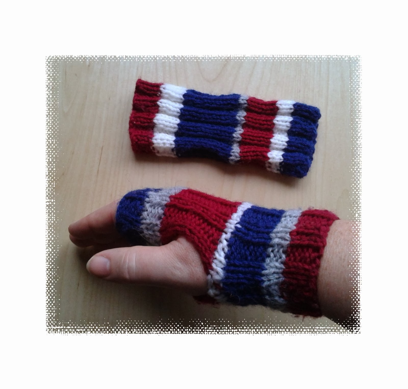 Knitted Striped Ribbed Wristwarmers for Teens & Adults