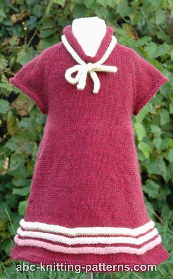 The dress is worked from the top to the bottom first back and forth, then, after shaping V-neck, in rounds without seams. The sleeves are worked in rounds.