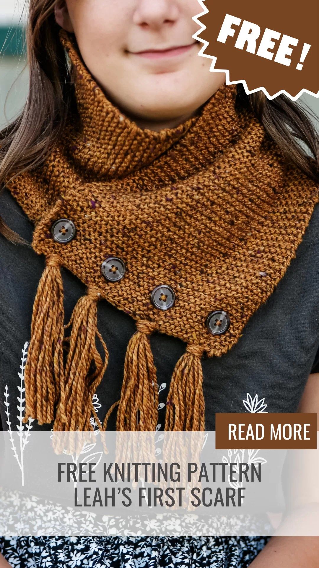 This scarf is knit flat with buttonholes on one end and buttoned together.