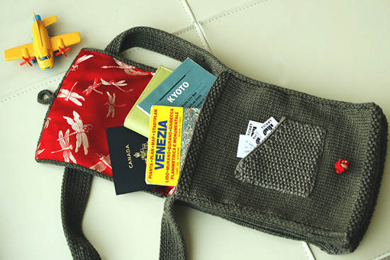 BO all sts using I-Cord Bind Off. When cutting yarn, leave a long tail for sewing pocket to bag.